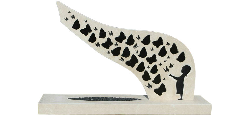 Continuing the Bellatrix theme with 44 black granite butterfly plaques, this double sided memorial will make a stunning addition to any remembrance garden. The base comes complete with 12 vases. The design shown can be amended, if you wish to follow a theme.