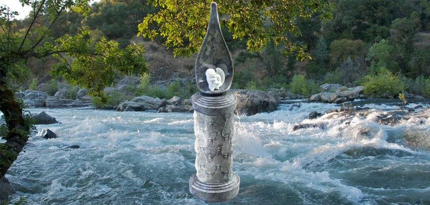 This beautiful feature memorial standing 4 feet 6 inches high provides a stunning centrepiece to your baby garden. The memorial is crafted from Bahama Blue granite and the sleeping cherub hand-carved from Italian marble. Forty two glass tear drop plaques adorn the column, each one suitable for inscription.