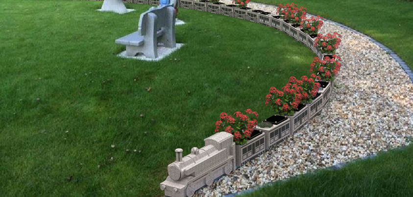 A fabulous re-working of our popular boundary kerbs, these granite memorials form an ideal kerb edging to paths and scatter lawns within the Children’s section of your gardens. The carriages house a single plaque and can be adapted to securely hold ashes if required. The Train Engine and Pony can be left natural or painted.